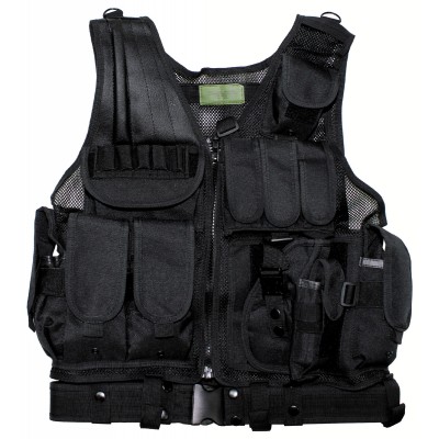 Grundmaterial Netzgewebe größenverstellbar durch seitliche Zugbänder 2 Innentaschen mit RV,6 Magazintaschen davon 2 abnehmbar per Klett,5 Außentaschen mit Klett ,davon 3 abnehmbar,Patronenhalter für5 Patronen abnehmbar per Klett,2 Molletaschen mit Clip abnehmbar,1 abnehmbares Pistolenholster mit Magazintasche. 1 Koppel mit Plastikverschluss.